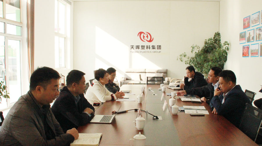 10月19日上午,秦皇岛市人民政府副秘书长庞印宝带领海港区政府副区长杨忠权一行到访天晖集团进行调研。天晖塑料集团总裁杜霜及集团各部门负责人进行了热情接待。